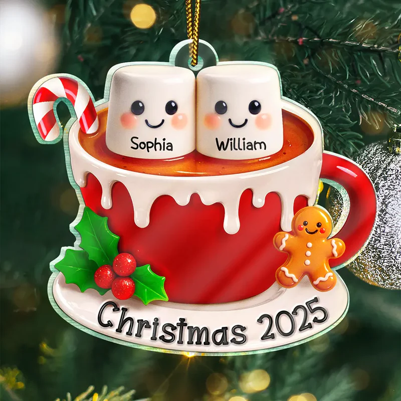 Marshmallow Christmas Hot Cocoa Couple New Married Family – Personalized Custom Shaped Acrylic Ornament